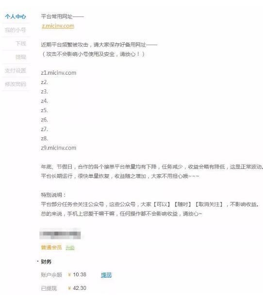 这些挂机平台的搭建背后所需要的技术成本并不需要太高。其中比较重要的是微信的授权功能、支付转账功能。同时这些平台也会设置一个提现门槛,例如低于10元不得提现。那么就会存在用户始终有一部分钱无法取出。而这些钱最后也会成为平台的收益。